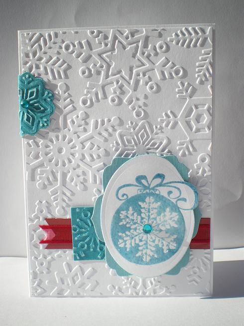 I had this stamped and embossed ornament on my desk and I've seen how other card makers have layered their spellbinders so I had a go - it all came together quite quickly - simple but effective.