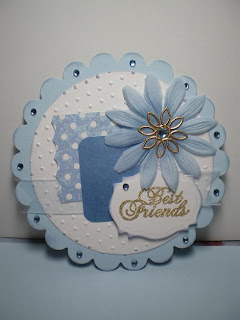 Can't believe I just did that - it's Monday morning...and I made this little circle card with the bits left scattered all over my desk from the weekend- the blues are soft and I found this gold flower trinket in my stash 'cause none of the other flower bits worked and I love it...just in time to add it to the Mojo site - 10 minutes to go..sometimes it has it's advantages to live in Australia. Thanks for taking a peek.