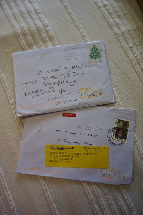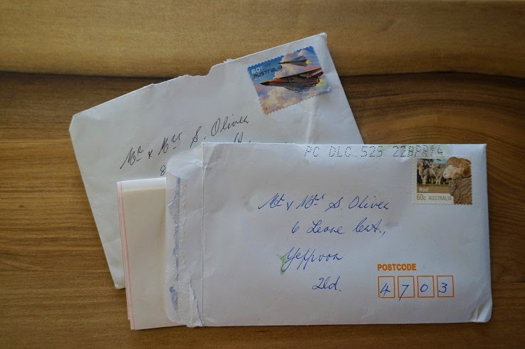 Sadly this is our present letterbox...on a lean and all - actually we're renting and the box that was there was bent and the lid didn't close so we bought the cheapest one a the hardware shop so our mail wouldn't get wet in the rain. But it still delivers the mail 5 days a week and I'm always eager to see what the mailman has dropped off for us....here's some of what I might find......