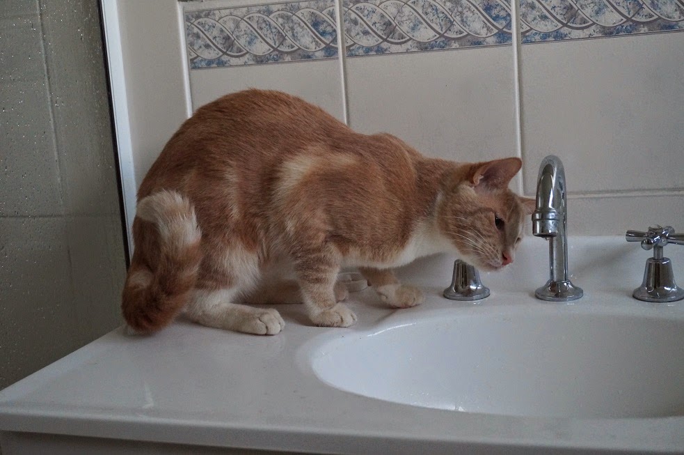 Oh what super pics of the cats, and the ginger one must be the twin of my daughter's cat who expects the tap to deliver a stream of fresh drinking water on demand.