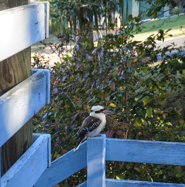 Happy Friday friends....and see below who is outside my window as I type this post...I'll be quick so I can go feed him. Today I spent a lazy afternoon putting together my card for the Merry Monday #122 challenge - I found some gold embossed wrapping paper and some designer paper with silver snowflakes  and then my Merry Christmas ornament stamp and decided to die cut an oval and a circle in my top card and place the papers behind them. Then I cut out the stamped image so I could raise that on foam dots. I dressed up the ornaments with some bling and a die cut shape (which is really the waste from a fancy doiley). I matted it in black and finished the card with a couple of sprigs of black die cut holly.  Thanks for taking a peek Robyn  off to feed Kooka now