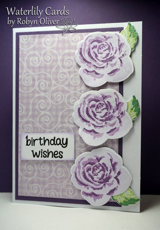 I have this set too Robyn but not used it yet. I love your card. The roses look beautiful in purple. Barbxx