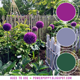 Hues to Use at Power Poppy and have again tried something a little different. I used Distress Inks for my image outline in Wilted Violet and then some masking and res-tamping the image with Hickory Smoke. Then I used a damp brush to pull the ink onto the petals and added some colour to the centers. I framed the panel with dark purple and mounted this onto a grey patterned designer paper. To finish I added a strip of green/purple ribbon and a button. Thanks for taking a peek
