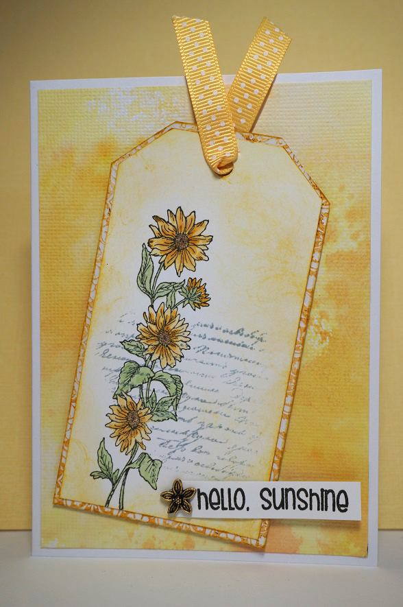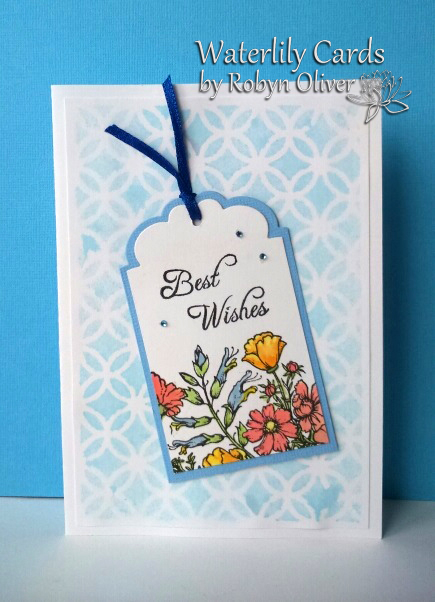 Now in another pack I found a heap of tags and frames, so another style of card emerged. I painted the frame with cream acrylic, stamped the sentiment on a background created with distress inks sponged direct onto waterolour card and sprayed with water. Layered this on two tones of blue onto a cream card and finished off the frame with a curly bow, flower and pearls.