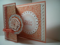 So I have used papers and elements from the Kaisercraft Pickled Pear set, stamped and coloured the floral sprig and fussy cut it and mounted it over a band of hessian and ribbon on the front of the card, then added one of the die cut sentiments from the set which I thought very appropriate for a calendar. Inside I adhered a band of weatherboard paper matching the front and a scalloped edge and then the mini calendar and finished off with a wood flourish and handmade flower - which helps to support the easel as the calendar pages are removed.