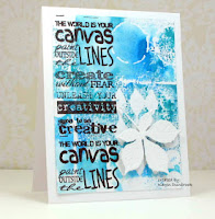 For my last card today I'm CASEing Shery's card for this months Stamplorations CASEplorations challenge. I sponged some Distress Ink over a background created with ink on scrunched plastic bag. Then stamped the sentiment in black but it was kinda lost so I cut it out and mounted on white to frame it. Thanks for taking a peek