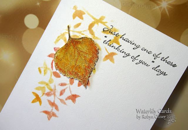 .. Stamped and pale gold embossed my flowers and used the matching die to cut them out... then watercoloured them with Distress Inks. For the background I used my blending brushes to create a spotlight with Distress Oxide ink in Tattered rose for the centre blended with Aged mahogany to the edges. - then a fine mist of water for some splatters. To finish I added a stamped and white embossed sentiment strip.