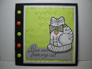 and I've chosen the top line - square card, embossing and brads for this bright card and also combined it with our RobVik challenge to use black, grey and lime green...it's a fun card. Have a great creative weekend everybody.