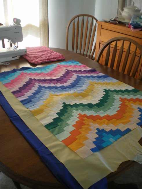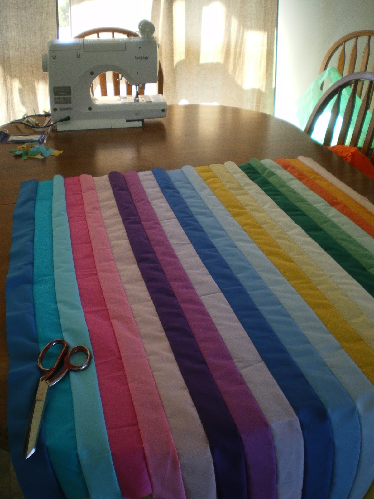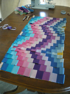 Now for the rest of the week I've been busy making a big mess in the living area with my sewing machine set up on the dining table from last week. I'm making a rainbow quilt using the Bargello technique - my first one ever but I've had these pieces of material for a very long time and so I got started.