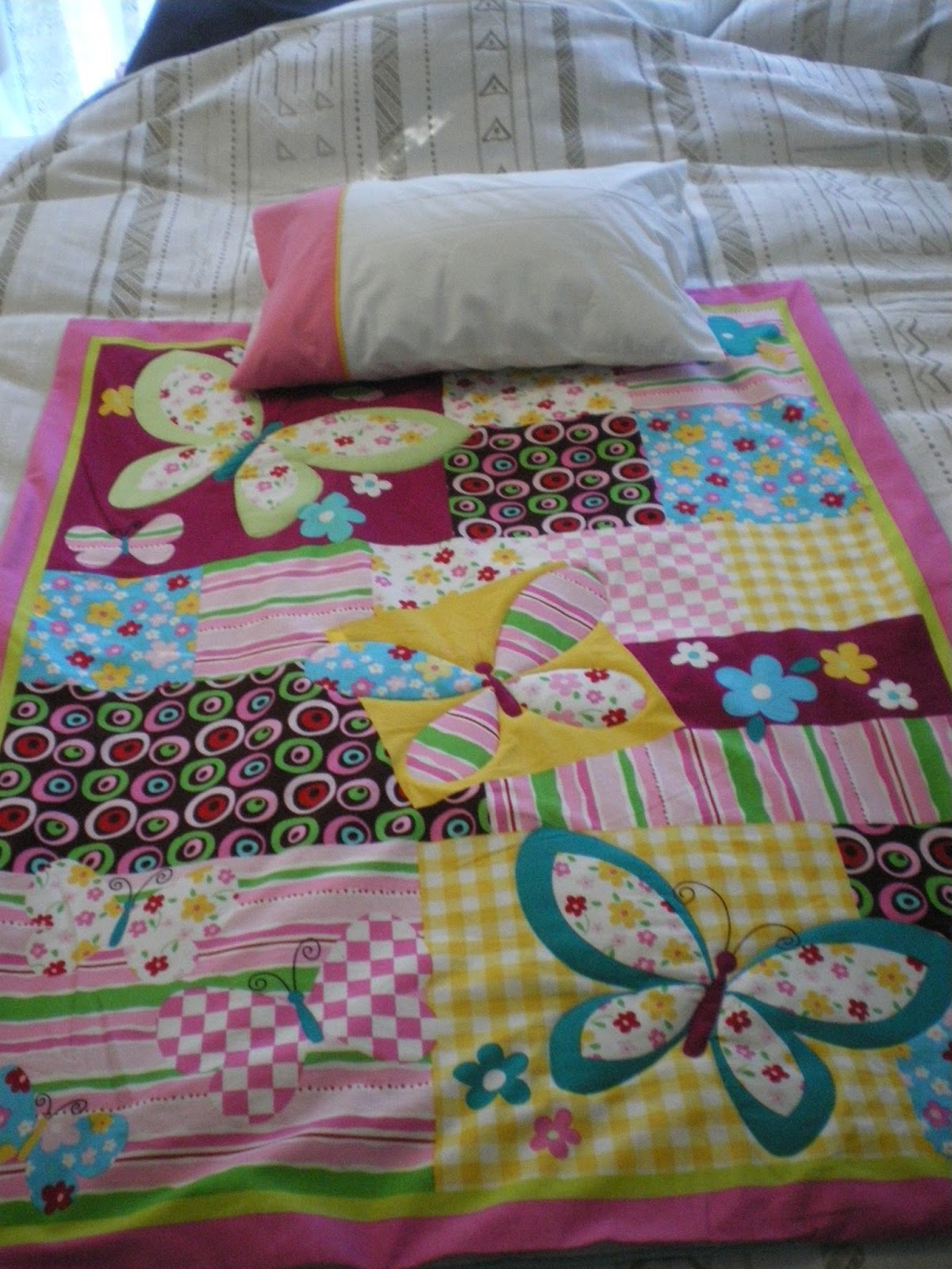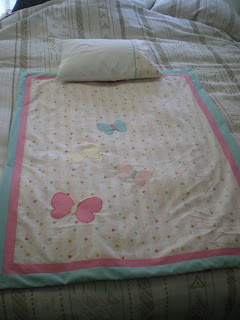 These are the two pieces of the quilt I was working on last week. First one I'm still blanket stitching the butterflies on, second the butterflies are padded - PS this is a store bought panel