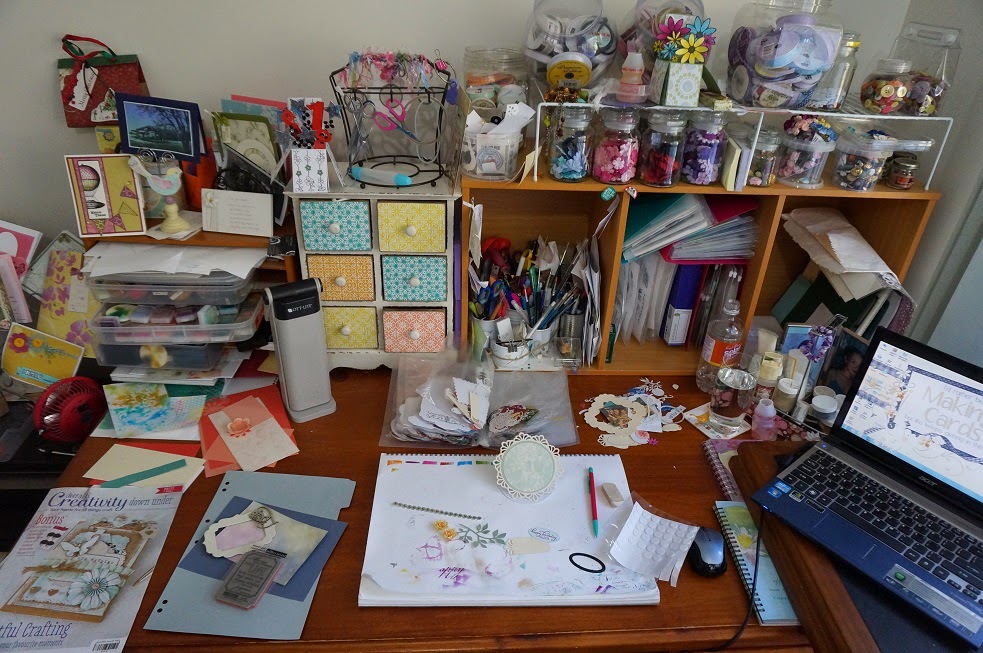 WOYWW #266 everyone!!!!! Yes, don't the Wednesdays come around quickly. Firstly thanks to all the lovely visitors last week and I too enjoyed snooping on quite a few desks. Secondly if you've no idea what we're talking about pop over to our hostess