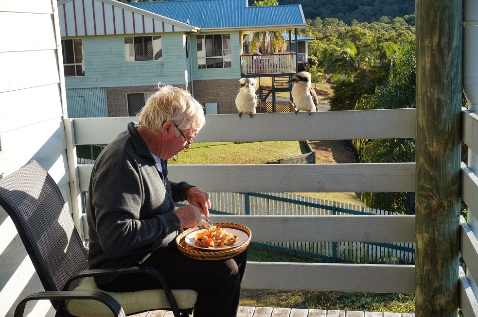 Now I'll share a few photos from the weekend...we thought we'd enjoy breakfast on our balcony is the morning sun....and of course the kookas were quick to join us.