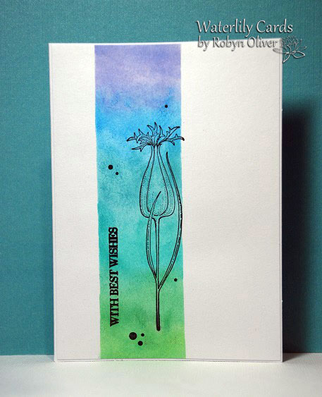 Today I've cased Anita's lovely Muse #273 card.... using elements- colours, masked strip, black stamped  image and sentiment on the strip with a few scattered dots.